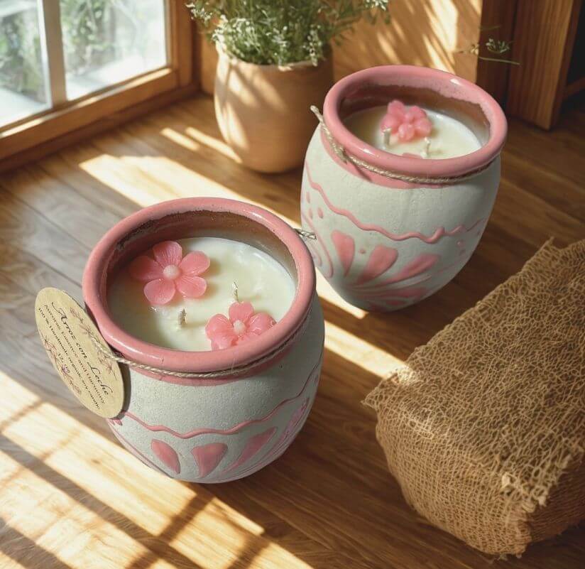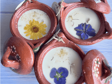 Nuestras velas son mucho más que un aroma: son un pedacito de México hecho con amor.Cada creación nace de cera de soya orgánica y se vierte a mano en barro pintado por artesanos mexicanos.Al encenderlas, llevas a tu hogar tradición, calidez y la magia de lo hecho a mano.