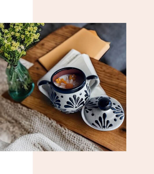 Each container is authentic barro mexicano, hand-painted by talented artisans. Every piece is unique and carries tradición, color, and cultura into your space.